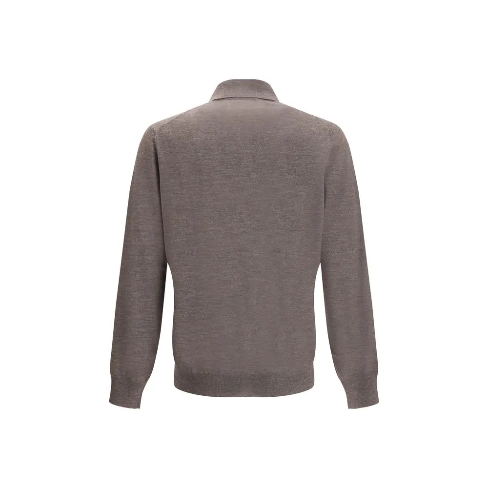 Brunello Cucinelli’s virgin wool Polo shirt is an elegant and refined piece featuring a classic ribbed collar that lends an understated touch. Tone-on-tone front buttons add a discreet yet distinctive detail, while the long-sleeved design and ribbed cuffs complete the look with a curated finish. The regular fit makes it versatile and comfortable, perfect for wearing in both casual and more formal settings. A great choice for a sophisticated outfit, but with an air of comfort and modernity.