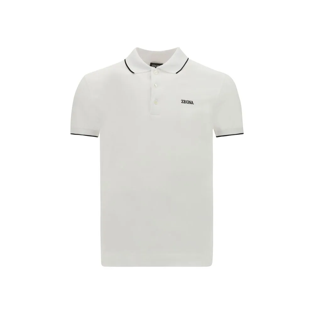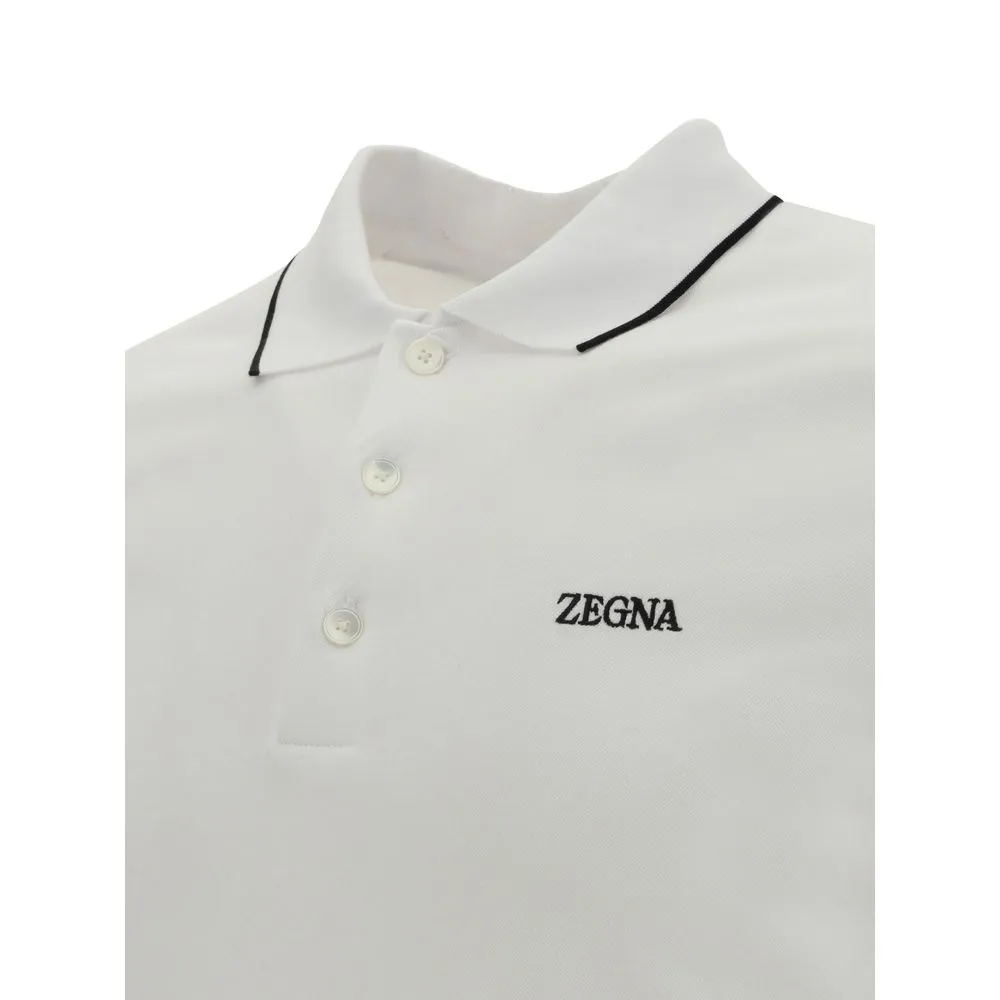 Cotton Polo Shirt by Zegna, classic ribbed collar with contrasting profile, tone-on-tone front buttons, short sleeves with contrasting profiles, iconic brand signature embroidered in contrast on front, regular fit.