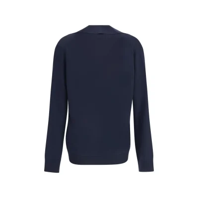 The Gucci polo Sweater combines relaxed elegance and iconic details. Crafted with a relaxed fit, it features a classic collar and a deep V-neckline that enhance its casual-chic silhouette. The design is completed by long sleeves, ribbed trims on the hem and cuffs, and a tone-on-tone embroidered logo on the front, for a subtle yet distinctive touch.