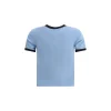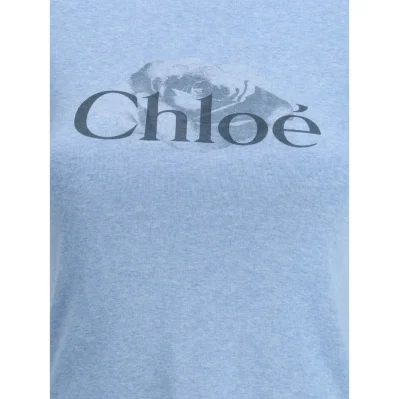 The light blue cotton T-shirt blends essential lines with distinctive details. A ribbed crewneck and short sleeves finished with contrasting black edges give the piece a modern, graphic appeal. The printed Chloé logo on the chest adds an iconic and recognizable touch. Fresh and versatile, it’s the perfect choice to complete everyday looks with simplicity and elegance.