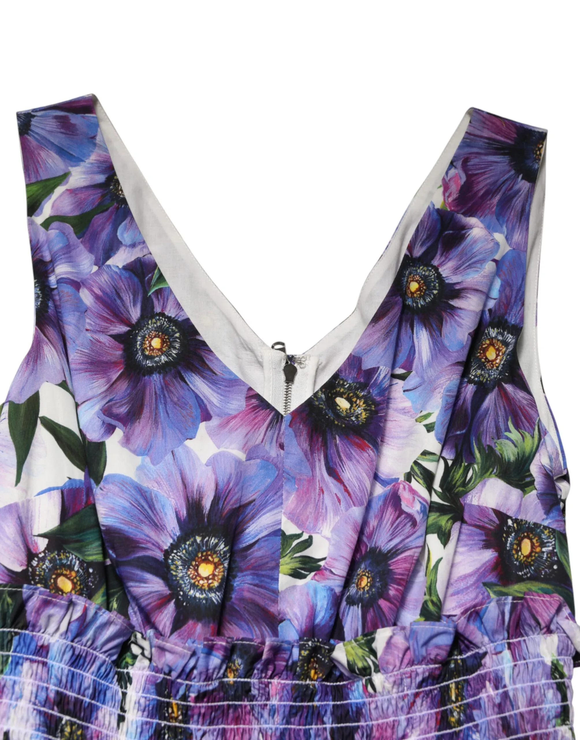 Gorgeous brand new, 100% Authentic Dolce & Gabbana midi dress features a delicate purple anemone print with soft pleats that enhance its graceful silhouette. Crafted with exquisite detail, it captures timeless Italian sophistication and romantic charm.