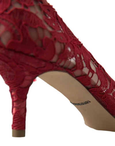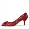 Red Taormina Lace Crystal Heels Pumps Shoes