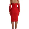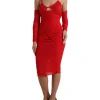 Red Nylon Stretch Cut Out Midi Dress