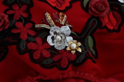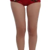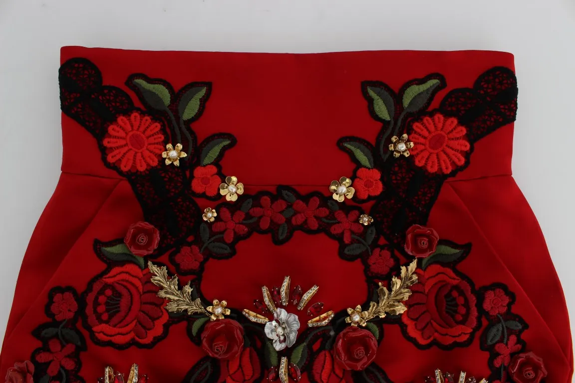 Gorgeous brand new with tags, 100% Authentic Dolce & Gabbana red silk Roses embroidered crystal high waist mini Shorts. This item comes from the MainLine Dolce & Gabbana Collection.