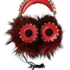 Red Gold Crystal Fur Headset Audio AUX Headphones