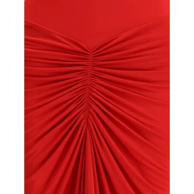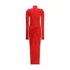 The Long Dress in Polyester by The Andamane embodies refined elegance through a slim fit silhouette that naturally enhances the figure. A high neckline and long sleeves lend a composed, contemporary character, while ruching at the back and along the parallel section adds movement and femininity to the design. A piece that blends comfort with sophistication, created to accompany life’s most special occasions in style.