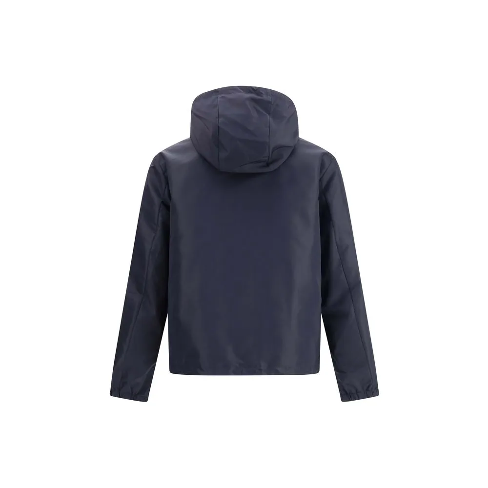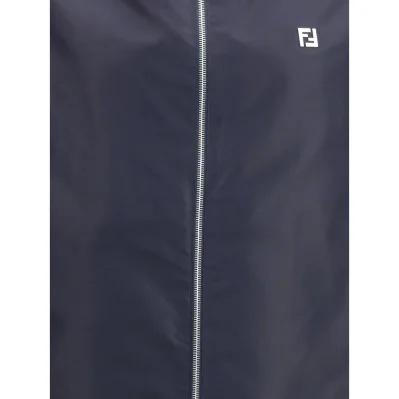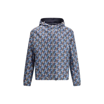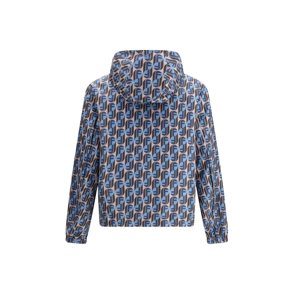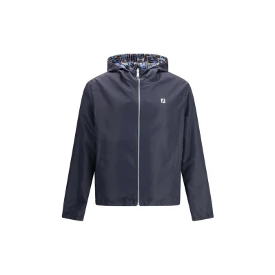 Fendi’s reversible K-Way Jacket is a practical and contemporary outerwear designed to combine functionality and style. Featuring a front zipper closure, it features a hooded design, two side welt pockets and adjustable drawstring hem for a customizable fit. The silver logo on the chest adds a distinctive touch. Reversible, it offers one monochromatic and one geometrically patterned side to suit different moods and occasions in one easy step.