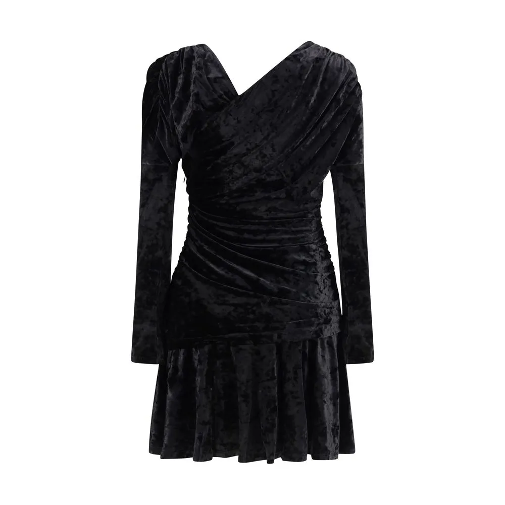 The Ruched Mini Dress by Ganni embodies femininity and modernity with its figure-enhancing silhouette. Defined by an asymmetrical neckline, long sleeves, and draped ruching along the bodice, it brings effortless elegance to any look. A versatile piece, perfect for evening occasions or as a statement addition to everyday styling.