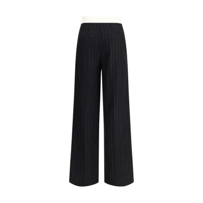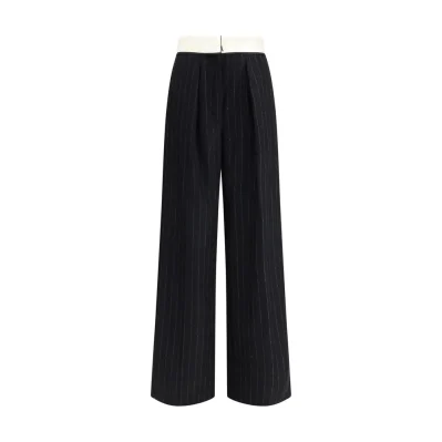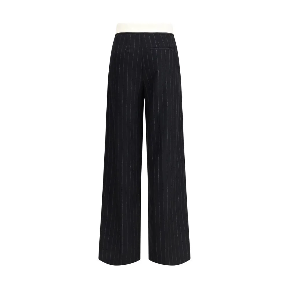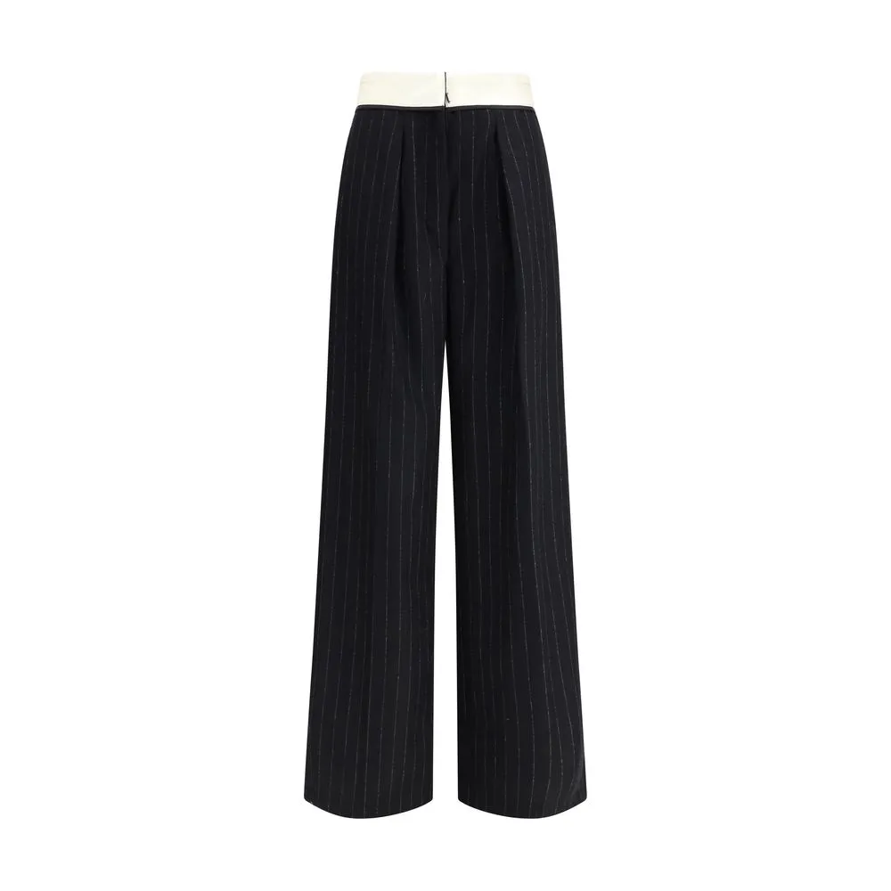 The sartorial high-waisted pinstripe wool-blend Trousers by Forte_Forte, designed to follow the body with natural ease. The gleaming waistband creates a refined contrast and fastens with a concealed double hook, while the elastic insert at the back ensures discreet comfort. A piece to be paired with airy blouses and deconstructed jackets, embodying essential and contemporary elegance.