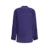 The Herschel Shirt by Khaite is a sleek and sophisticated piece designed for a modern, flowing look. Featuring a front button closure and classic collar, it has an asymmetrical hem and two side slits that enhance the design. The semi-transparent fabric lends lightness and a touch of sensuality, making this shirt a versatile and refined piece.