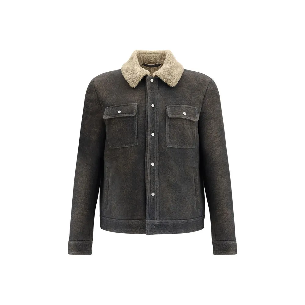 Salvatore Santoro’s Shearling Jacket combines craftsmanship and comfort in a design with timeless style. Featuring a soft shearling lining, it offers warmth and softness, while the classic collar and front snap closure define its practical and elegant character. Two flap patch pockets on the front complete the design for a functional and refined look.