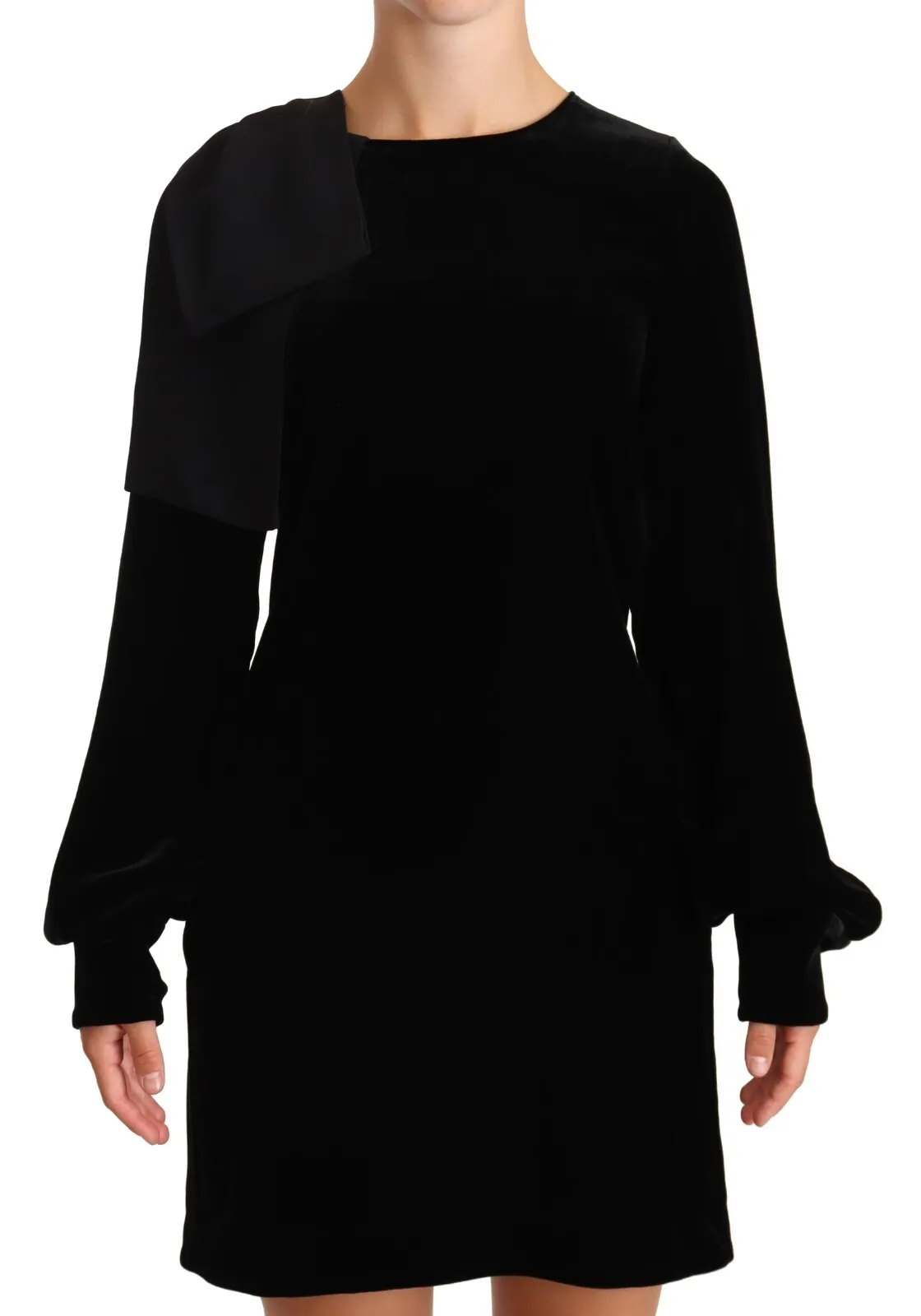 Sheath A-line Black Viscose Long Sleeves Round Neck Mini Dress