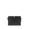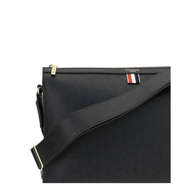 Thom Browne’s shoulder strap Pouch combines practicality and style with a distinctive touch. Featuring a top zipper closure, it features the iconic tricolor detail on the front and the signature embossed logo. The adjustable shoulder strap ensures versatile wearability, perfect for everyday elegance with a strong character.