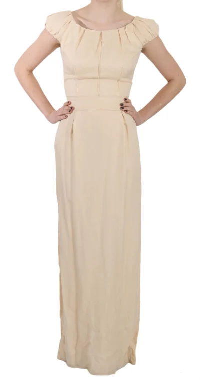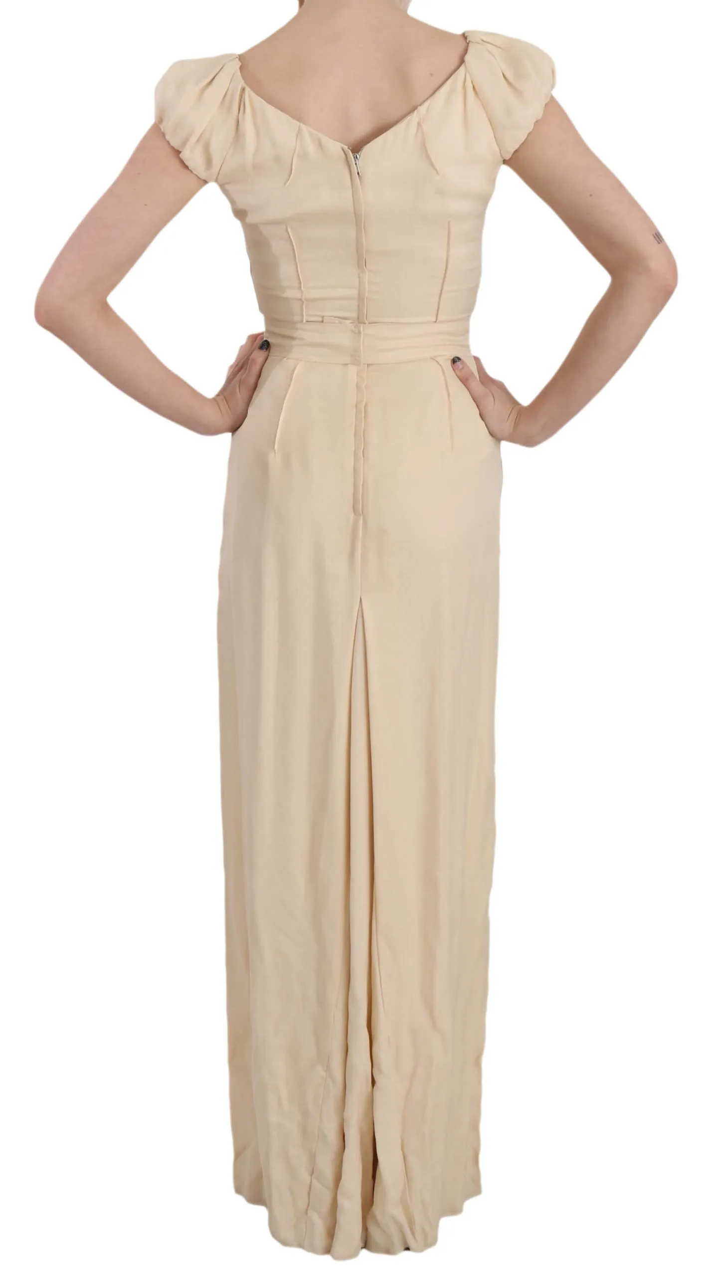 Gorgeous brand new with tags, 100% Authentic Dolce & Gabbana Dress Beige Silk Column Garterized Sleeve Gown