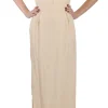 Beige Silk Column Cap Sleeve Gown Dress