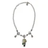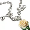 Silver Brass Clear Crystal Roses Pendants Necklace