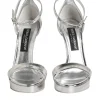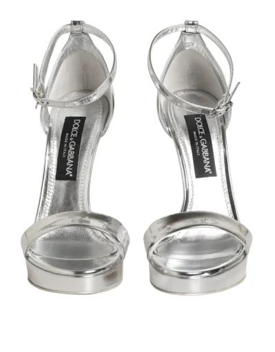 Gorgeous brand new, 100% Authentic Dolce & Gabbana Silver Leather Keira Sandals showcase bold glamor and Italian elegance. Crafted from metallic silver leather, they feature a high block heel and platform sole that provide both height and comfort. The design includes delicate ankle straps with an adjustable buckle for a secure fit and a luxurious finish. Perfect for evening events or special occasions, these sandals reflect Dolce & Gabbana’s signature style—opulent, feminine, and undeniably chic.