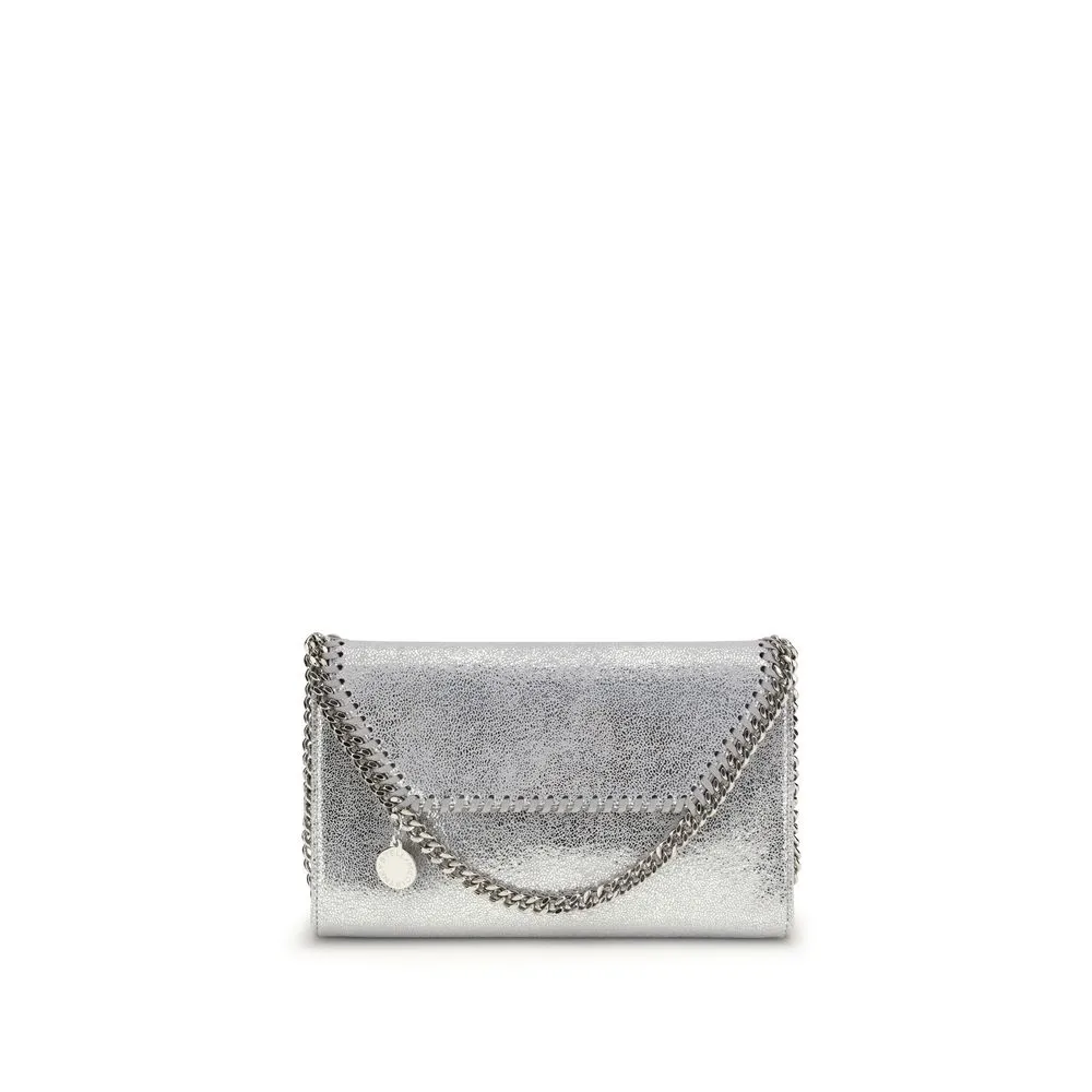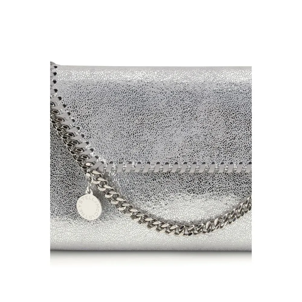 The Falabella metallic finish Shoulder Bag by Stella McCartney combines iconic style with sustainable design. Made of textured finish material, it features diamond-cut chain link trim and a foldover top. Featuring a chain-link shoulder strap, logo pendant, main compartment and interior patch pocket, it closes with a concealed magnetic closure that completes the model with understated elegance.