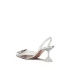 Begum Glass Pumps by Amina Muaddi captivate with a transparent and sophisticated design. Featuring an almond toe and a slingback detail on the heel, they are distinguished by a semi-transparent geometric kitten heel that adds lightness and modernity to the silhouette. A precious embossed jewel decorated with rhinestones and diamonds stands out on the toe, while the press-studded logo insole completes the model with an exclusive touch. Perfect for an elegant and dramatic look.