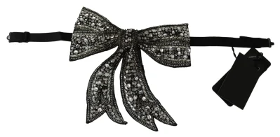 Gorgeous brand new with tags and box, 100% Authentic Dolce & Gabbana silver-tone silk crystal embellished bow tie features a clip fastening.