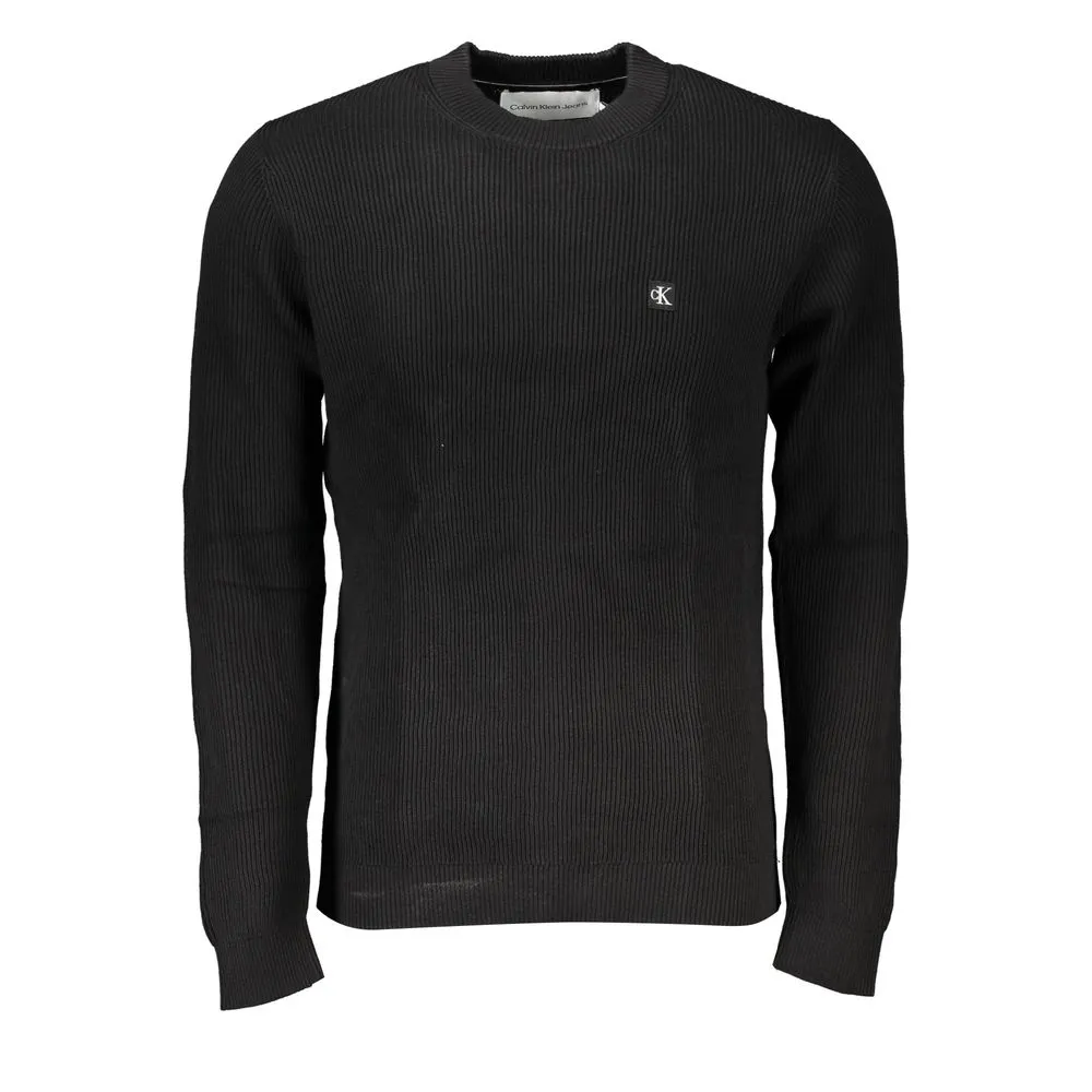 Step into timeless style with this luxurious black crew neck sweater from Calvin Klein. Perfect for transitional weather, this sweater features contrast details and a signature logo application, creating a sophisticated yet bold statement piece for any man’s wardrobe.