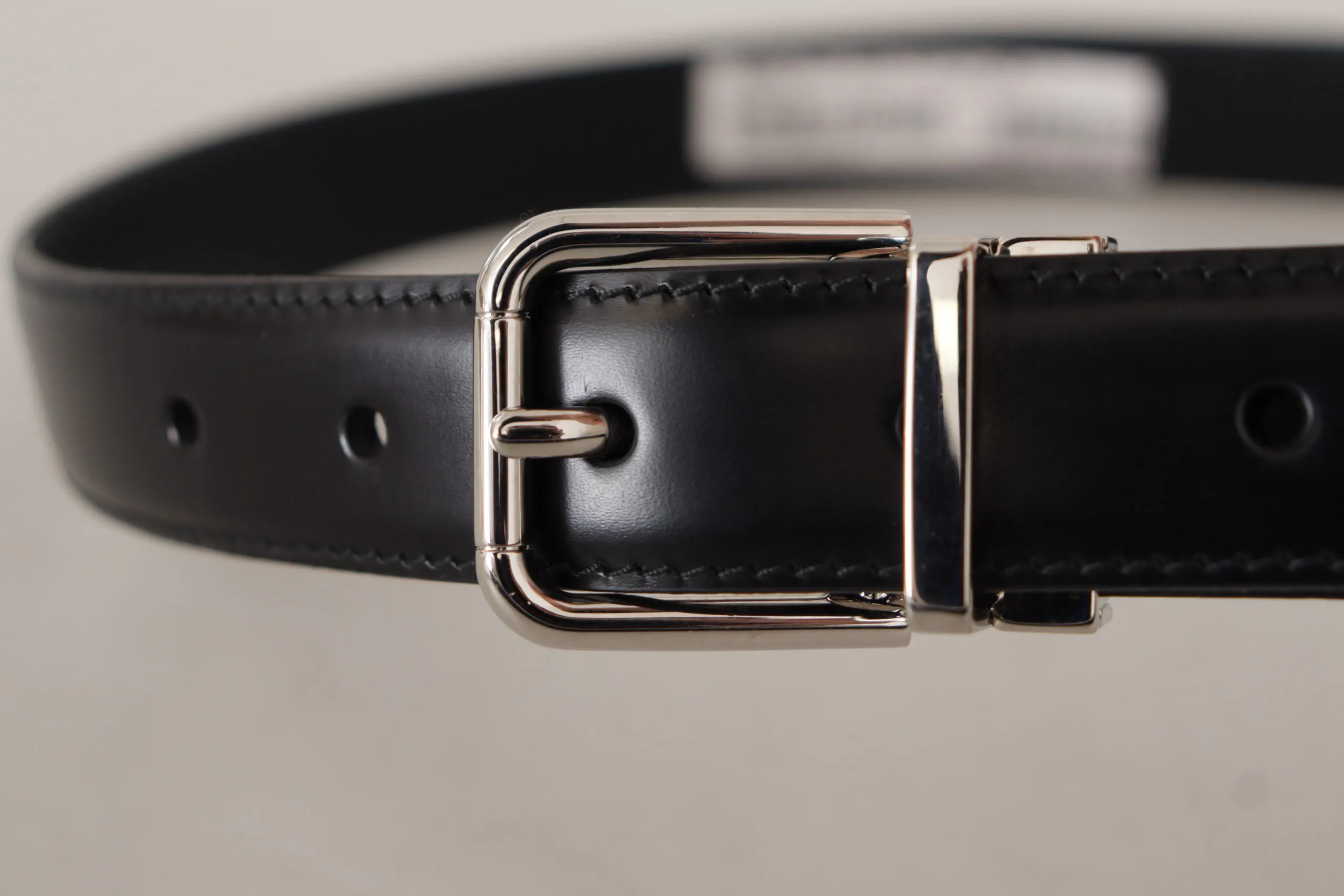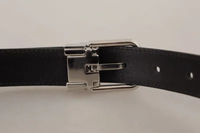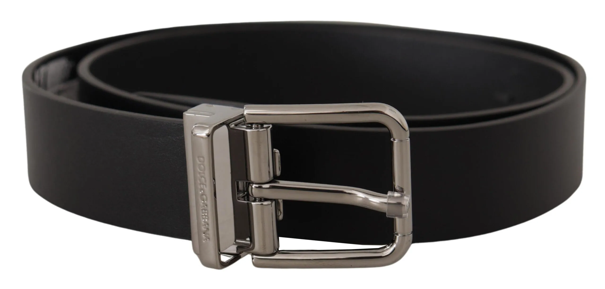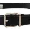 Black Calf Leather Logo Engraved Metal Buckle Belt