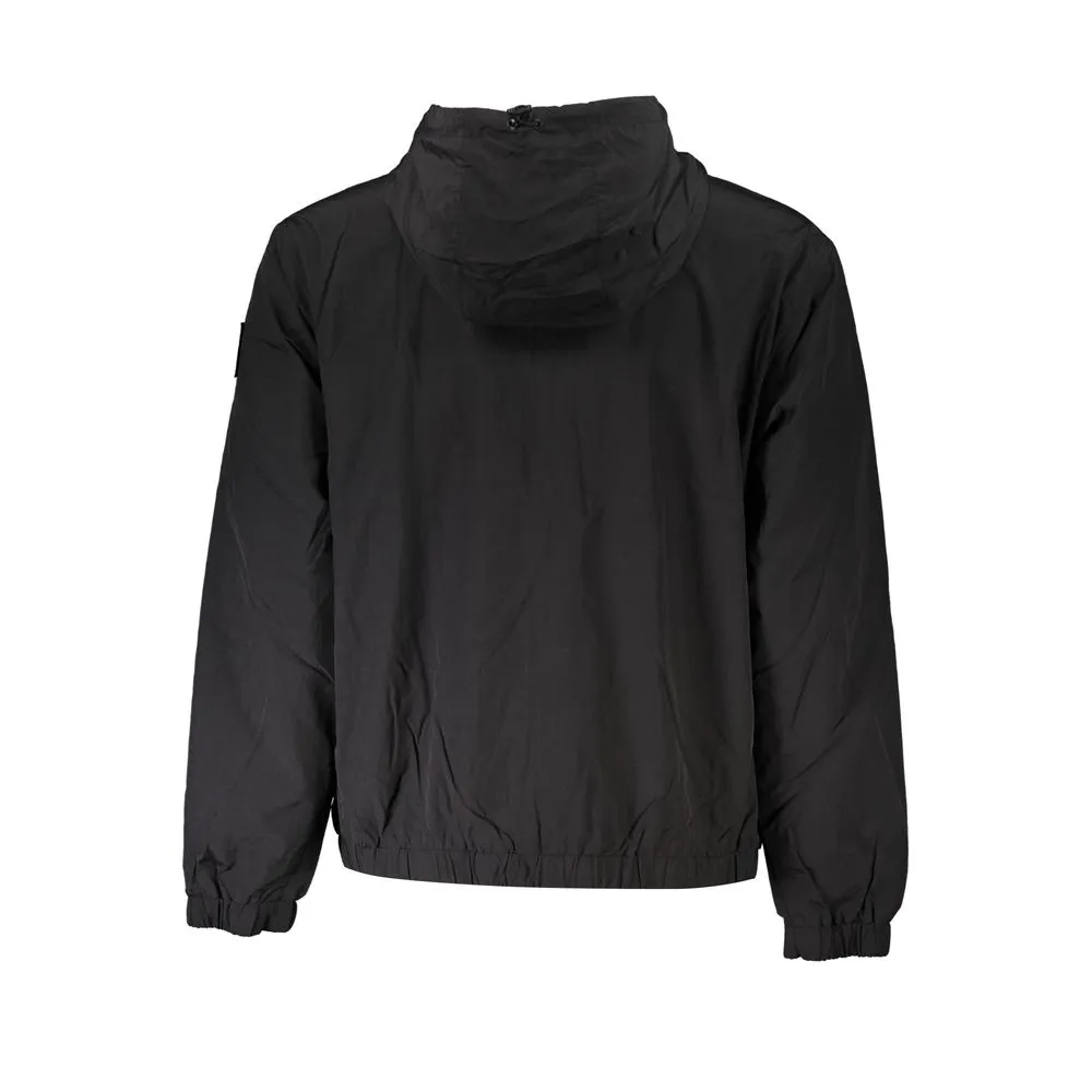 Refine your athletic attire with this sleek long-sleeved sports jacket from Calvin Klein. Designed for both functionality and style, it features a versatile hood, two handy external pockets, and an additional internal pocket. The jacket’s secure zip-up design is complemented by a subtle application, a distinctive print, and the iconic Calvin Klein logo emblem, adding a touch of designer flair to this sporty essential.