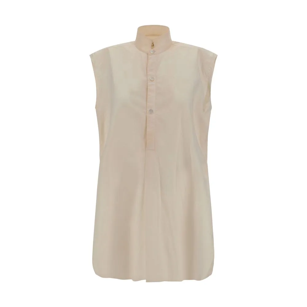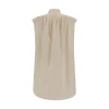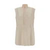 Quira’s cotton Shirt is an elegant and sophisticated garment featuring a sleeveless design and mandarin collar that add a touch of sophistication. The half-bust closure by buttons on the front adds a practical and elegant detail. The vintage effect design and side slits offer a dynamic and modern silhouette, while the monochrome pattern maintains an understated and versatile look. The oversize fit ensures comfort and a contemporary silhouette.