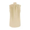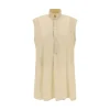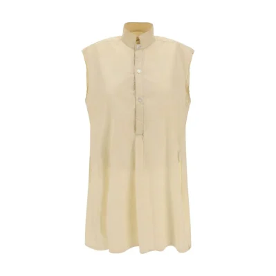 Quira’s cotton Shirt is an elegant and sophisticated garment featuring a sleeveless design and mandarin collar that add a touch of sophistication. The half-bust closure by buttons on the front adds a practical and elegant detail. The vintage effect design and side slits offer a dynamic and modern silhouette, while the monochrome pattern maintains an understated and versatile look. The oversize fit ensures comfort and a contemporary silhouette.