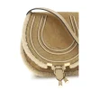 Small Saddle Marcie Shoulder Bag by Chloé reinterprets the house’s iconic equestrian aesthetic in a warm, textured key. Crafted in suede with shearling details, it is distinguished by its rounded silhouette and streamlined topline. The flap with leather tassels recalls the saddle style typical of the line, enhanced by the characteristic decorative stitching. Inside, it offers a roomy compartment, an open front pocket and a flat card compartment. An adjustable leather shoulder strap and tasseled flap closure complete the design for the perfect mix of functionality and boho-chic style.