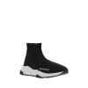 Speed Sneakers by Balenciaga, featuring an elongated toe, a ribbed ankle detail, a sock design, a logo to the side and a textured sole.