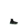 Balenciaga’s Speed Sneakers are a bold and contemporary take on the sneaker concept, with an innovative design that combines comfort and style. The fitted sock style ensures a perfect fit and a lightweight feel, while the elongated toe on the front gives a sleek, modern look. The non-slip geometric textured sole offers added stability and comfort, while the brand’s iconic contrasting signature on the outer side panel adds a distinctive and easily recognizable detail. The slip-on style without closures completes their practicality, making them easy to wear and perfect for casual-chic style.
