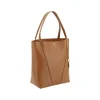 Leather Spin Shoulder Bag by Chloé is a refined and modern accessory featuring a sleek grained leather design. The two flat top handles offer a comfortable and practical grip, while the brand’s iconic monogram, press-stamped on the front, adds a distinctive touch of luxury. The closure of the bag is made via a ring that holds the two handles together, an element that gives it a unique and functional look. A fascinating detail is the chain with a pendant bearing the iconic logo applied to the handle. The interior of the bag consists of a single compartment.