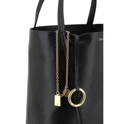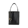 Leather Spin Shoulder Bag by Chloé is a refined and modern accessory featuring a sleek grained leather design. The two flat top handles offer a comfortable and practical grip, while the brand’s iconic monogram, press-stamped on the front, adds a distinctive touch of luxury. The closure of the bag is made via a ring that holds the two handles together, an element that gives it a unique and functional look. A fascinating detail is the chain with a pendant bearing the iconic logo applied to the handle. The interior of the bag consists of a single compartment.