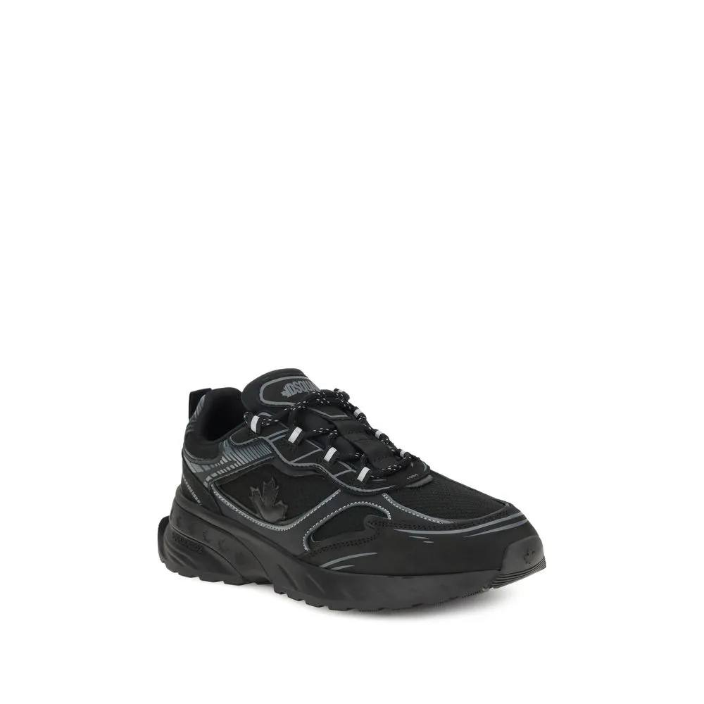 Sprinter Sneakers by Dsquared2 combine technical materials and modern design.Made of mesh and cracked-effect leather, they are enhanced with reflective details for increased visibility.Trekking-style laces emphasize the sporty soul, while the maple leaf on the side recalls the brand’s Canadian identity.The rubber running sole ensures comfort and grip, complemented by the Dsquared2 patch on the tongue for a distinctive and recognizable touch.