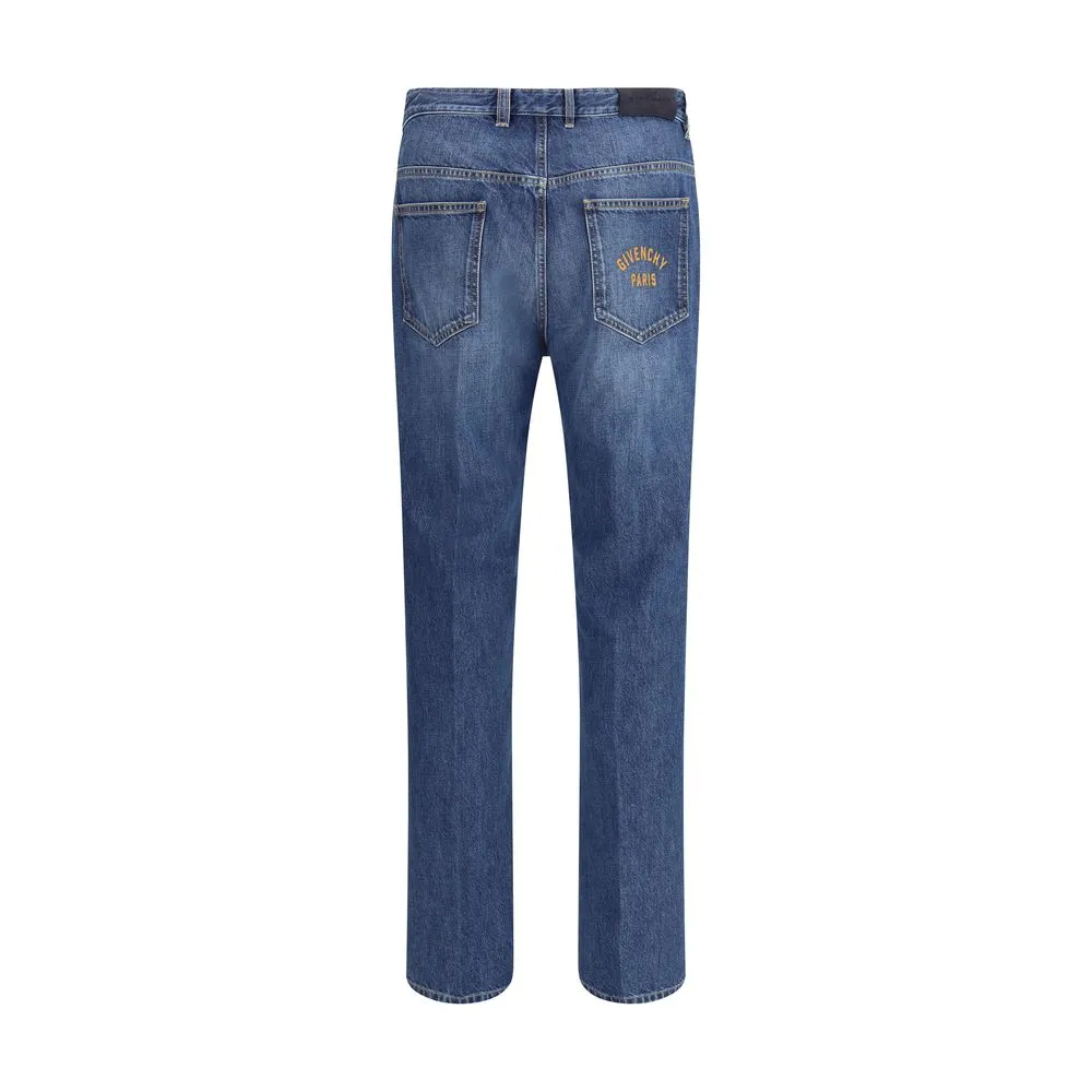 Cotton straight fit Jeans by Givenchy featuring a front button closure, five pockets, belt loops at the waist and a logo leather patch at the back. Essential straight-cut model, ideal for a sophisticated and timeless look.
