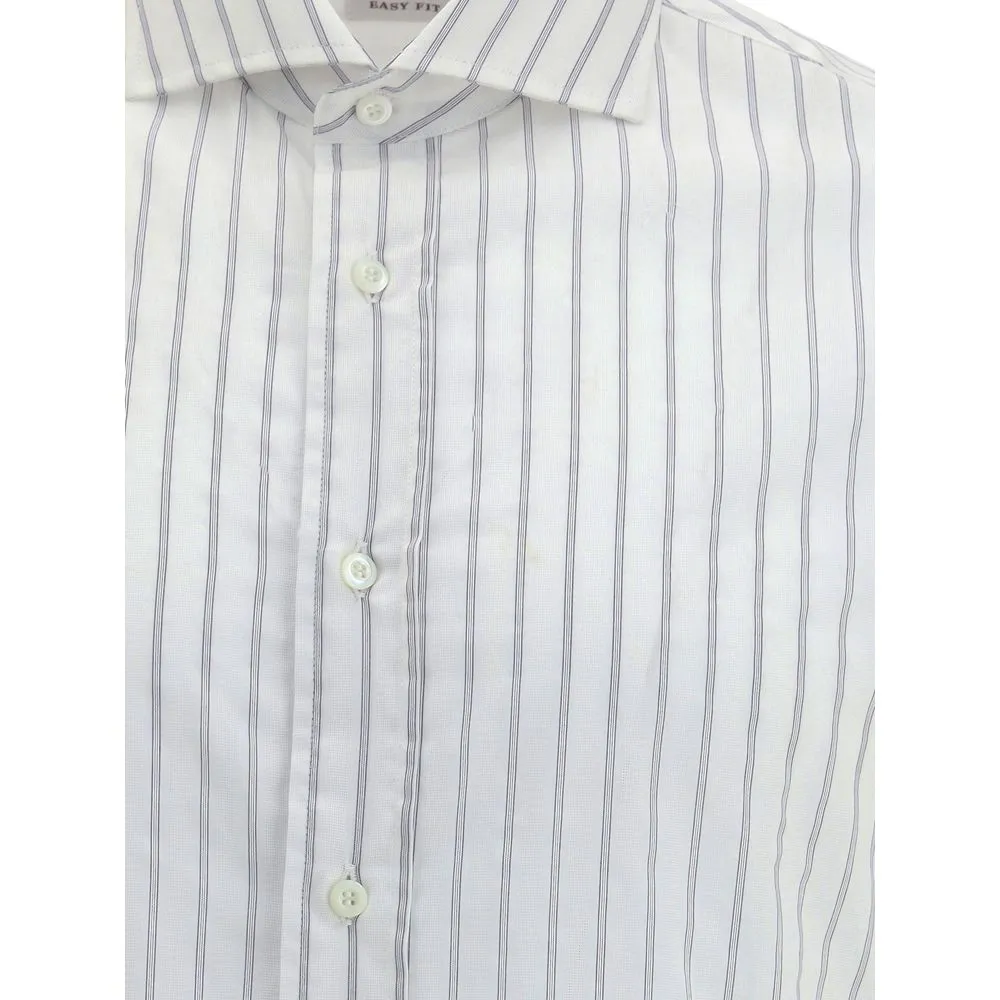Brunello Cucinelli’s striped Shirt is an essential piece with a refined style, featuring a classic collar and a front button closure. The striped pattern adds an elegant and timeless touch.