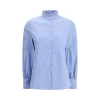 The Valentino Striped Shirt is an elegant and feminine piece, enriched by refined details such as the ruffles on the collar and cuffs. The VG Logo embroidery adds a distinctive touch, while the front button closure completes the classic design with a touch of modernity.