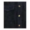 Brunello Cucinelli’s suede Jacket has a shirt style with a classic collar. The front closure features buttons, while flap pockets are attached to the front panel for a touch of practicality and elegance. Adjustable button cuffs offer a customized fit.