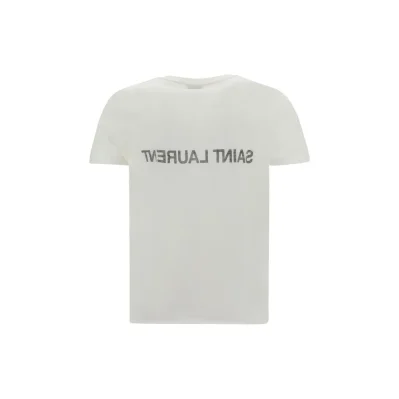 Cotton T-Shirt by Saint Laurent, ribbed crew neck, iconic brand... Read More
