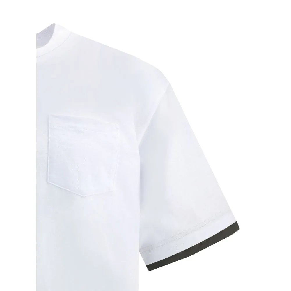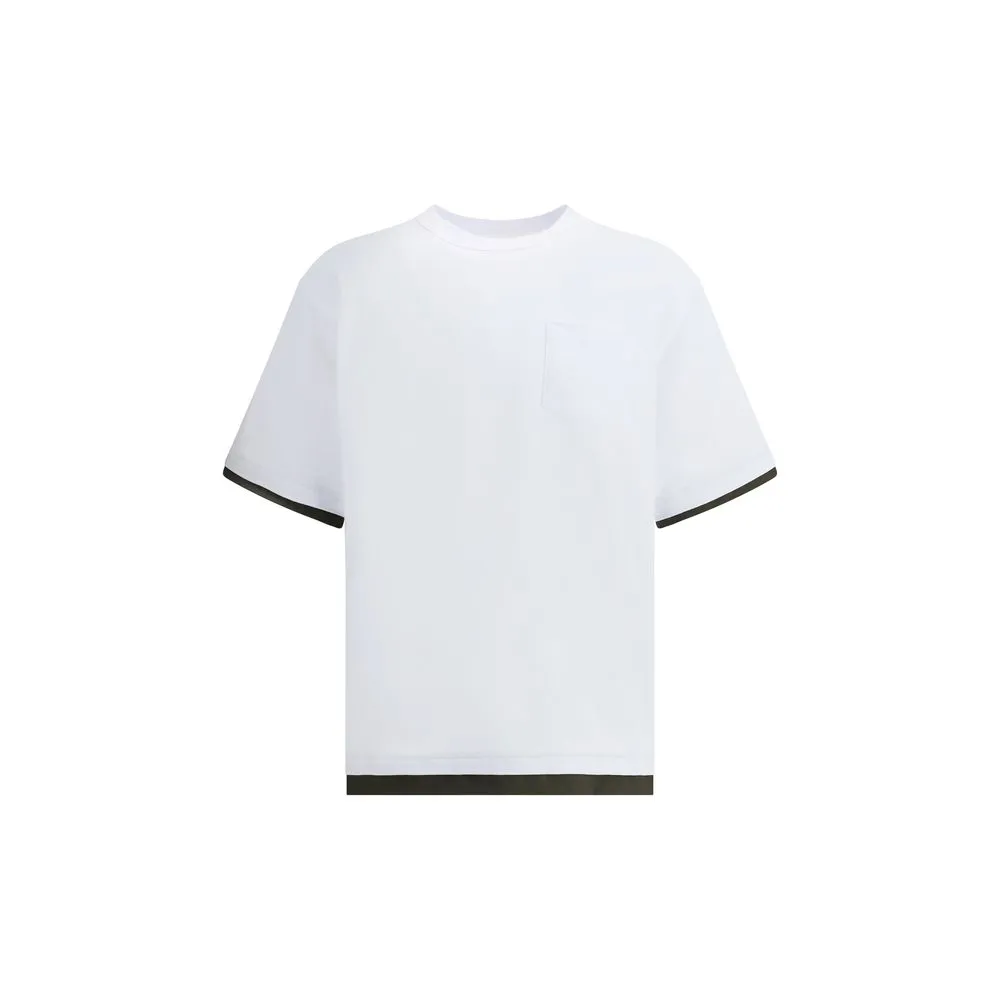 Sacai’s T-Shirt features a patch pocket on the front, adding a functional and stylish detail. The classic crew neck ensures comfort, while the double layers on the hem and sleeves give an innovative and distinctive touch, perfect for those who love an original and contemporary look.