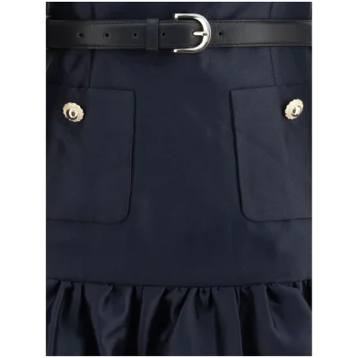 Self-Portrait’s taffeta short Dress is an elegant and characterful garment. Sleeveless and round-necked, it features a balloon skirt that adds volume and movement to the silhouette. The back zipper closure ensures a perfect fit, while the four embossed button patch pockets on the front add a refined detail. Complete with included leather belt loops, it allows you to define your waist in style.