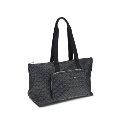 The Michael Kors Tanner large Tote Bag is perfect for the stylish and practical traveler. With its reversible design, it offers two looks in one: iconic logo print on one side and solid color on the other. Foldable inside itself, it stores conveniently in a suitcase. Featuring a double top handle and zippered closure, it is ideal for storing phone, wallet and other essentials with elegance and functionality.