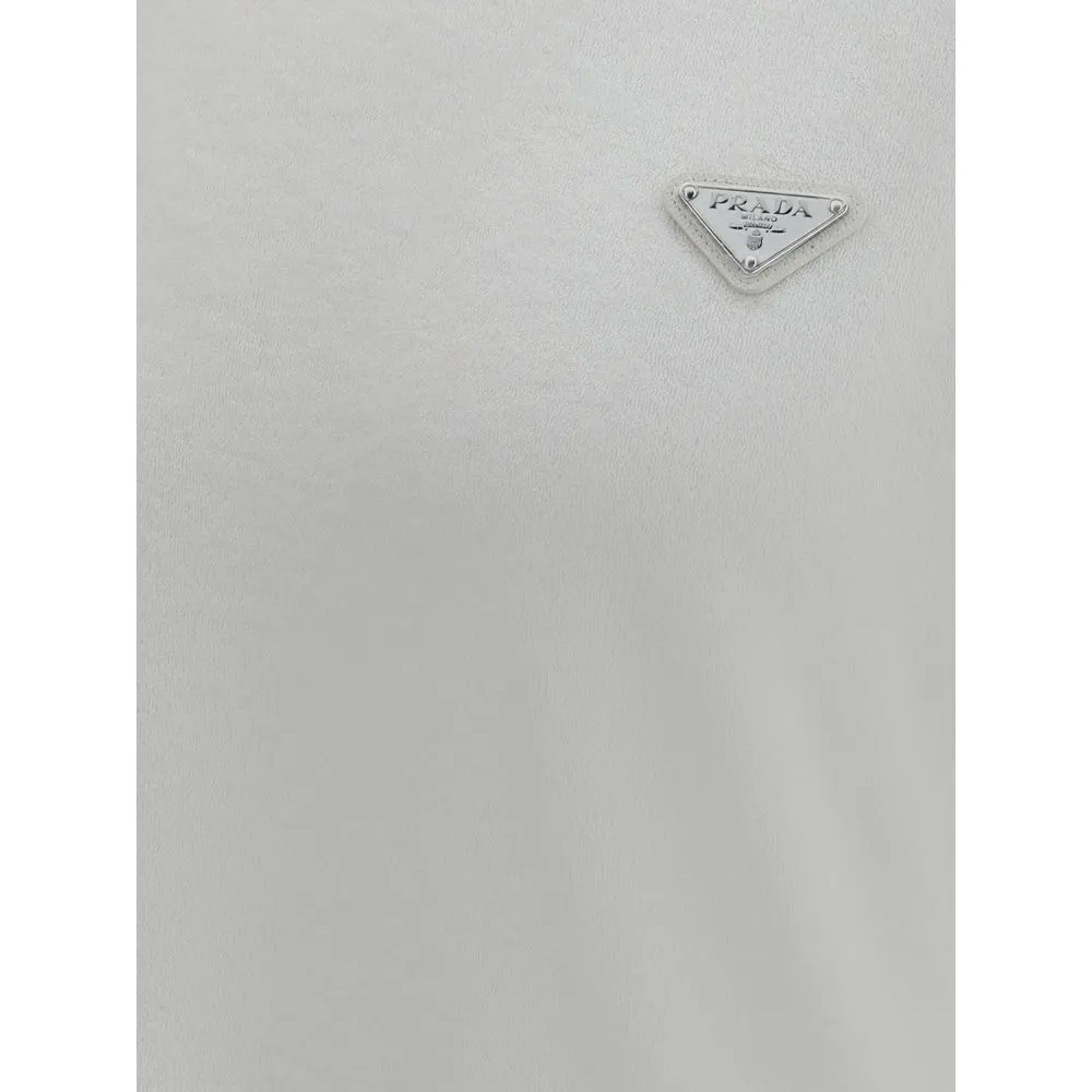 Prada’s Terry T-shirt is a garment that flawlessly combines comfort and style. Made of terry cloth, it offers a soft texture and absolute comfort, ideal for a casual yet classy look. The minimalist design is enhanced by a plaque with the brand’s iconic logo applied on the front, adding a distinctive and modern touch. Perfect for those seeking a stylish yet comfortable garment that can be easily paired with a variety of styles, from a more casual day to a more refined look.
