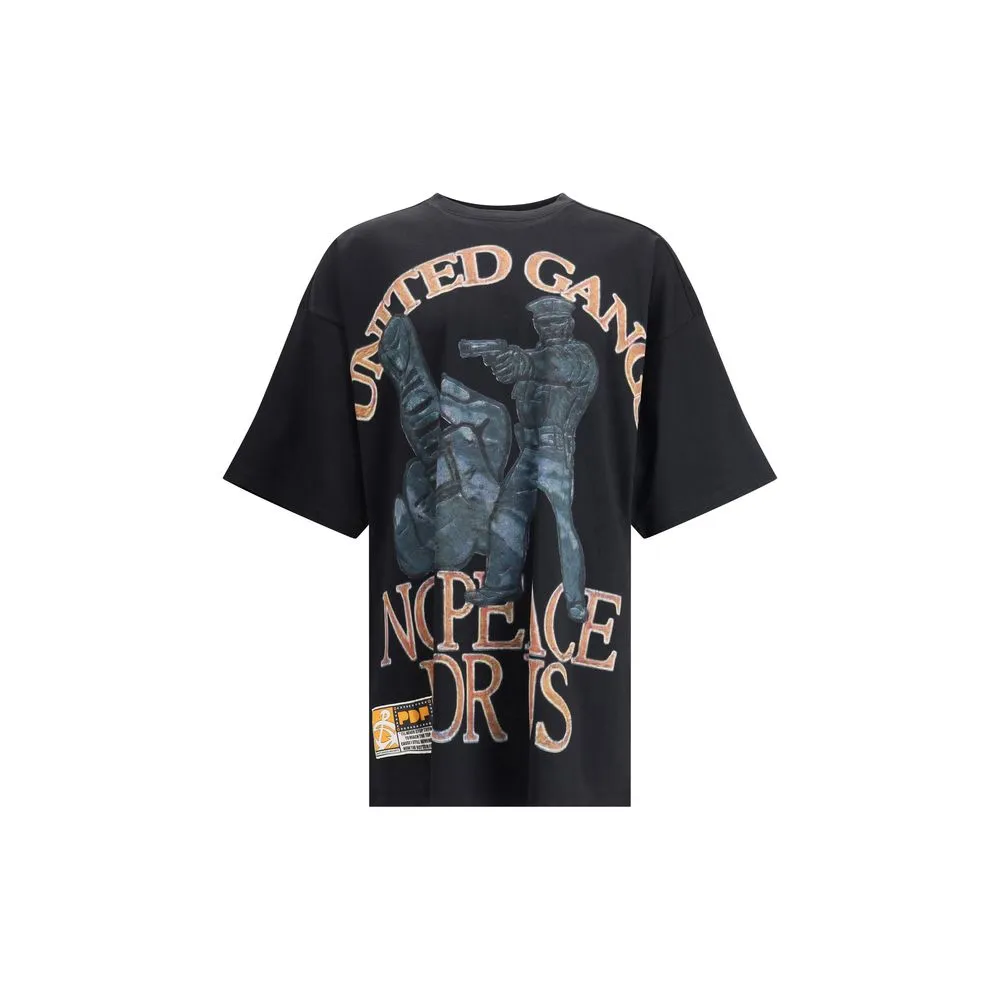 PDF Channel’s The Boy Black Gangs T-Shirt is distinguished by its oversized style that provides a comfortable, modern fit. Made with a crew neck and short sleeves, it is perfect for a casual, contemporary look. The embossed screen print on both the front and back adds a graphic and distinctive detail, making this garment a must-have for those who like to express personality even with simplicity.