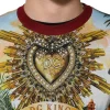 Gorgeous brand new, 100% Authentic Dolce & Gabbana pullover sweater. This luxurious silk piece features a vibrant tropical print adorned with a striking heart and crown motif, embodying the brand’s signature blend of bold romance and Italian flair. Expertly crafted in Italy, it offers a smooth, lightweight feel with a classic crew neck and ribbed trims for a refined finish. A true statement piece perfect for standout styling.