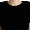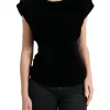 Gorgeous brand new, 100% Authentic Dolce & Gabbana top. Exaggerated shoulders effectively contrast with the fitted silhouette. Crafted from jet black viscose velvet.