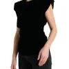 Black Velvet Fitted Padded Shoulder Blouse Top