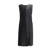The Virgin Wool Midi Dress by Maison Margiela reflects tailoring through a conceptual and refined aesthetic. The asymmetric design and contrasting stitching lend an experimental character, while the sleeveless cut highlights the purity of the silhouette. The concealed back zip closure preserves essential elegance, embodying the maison’s distinctive approach.