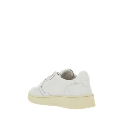 Calfskin Leather Sneakers by Autry, round and perforated toe, frontal... Read More